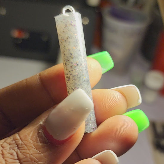 Limited edition white round holographic design long pendant necklace. (Multiple shiny colors)
